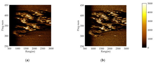 The SSS image processing results: (a) SSS images processed by the sharpening method and (b) SSS images processed by the proposed method.