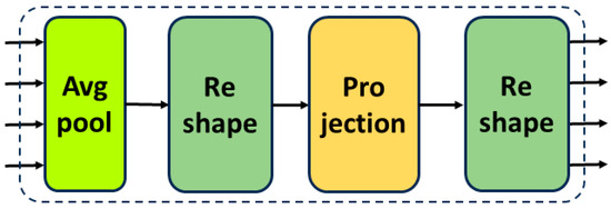 Schematic diagram of the MFE module: Avg Pool is an adaptive mean pooling module, the Reshape module reshapes the tensor to meet the calculation requirements, and the Projection module is an embedded projection feature extraction module.