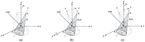 Geometry of the space cone-shaped target with micro-motions. (a) Precession. (b) Wobble. (c) Nutation.