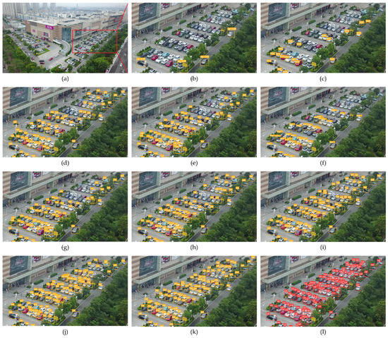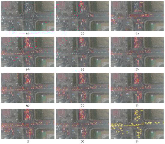 In order to visually demonstrate the performance of the proposed GCL-YOLO network, more detection results on the VisDrone-DET2021 dataset and the UAVDT dataset are shown in Figure 13 and Figure 14. It can be seen that the proposed network performed well in terms of detecting small objects, dense objects, occluded objects, and blurred objects.