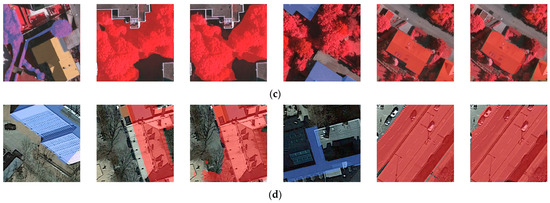 Qualitative results of the FTNet: (a) FSS-RSI-DeepGlobe; (b) FSS-RSI-Potsdam; (c) FSS-RSI-Vaihingen; and (d) FSS-RSI-AISD.