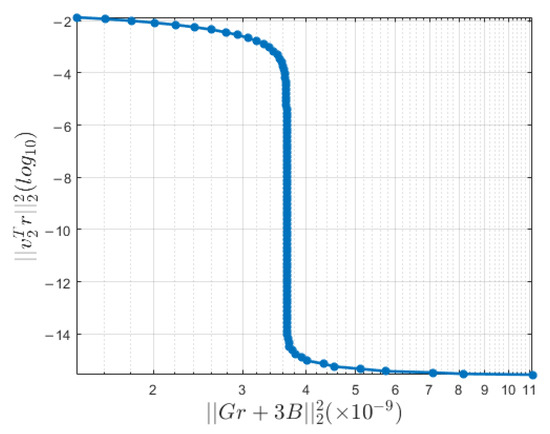From the Figure 6, it is evident that the curve exhibits a distinct L-shape. Moreover, the elbow of the L-curve is positioned where the residual norm is about and the solution norm is about . At this point, a balance between the solution norm and the residual norm is achieved. Hence, the optimal penalty coefficient is 0.2154.