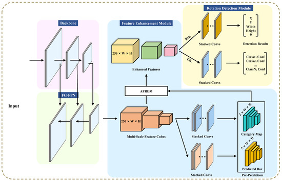 AFRE-Net is built based on RetinaNet-R [16] (baseline detector), which has classic object detector architecture and is easy to transfer. The overall pipeline of our AFRE-Net is shown in Figure 3. AFRE-Net consists of four main parts:
