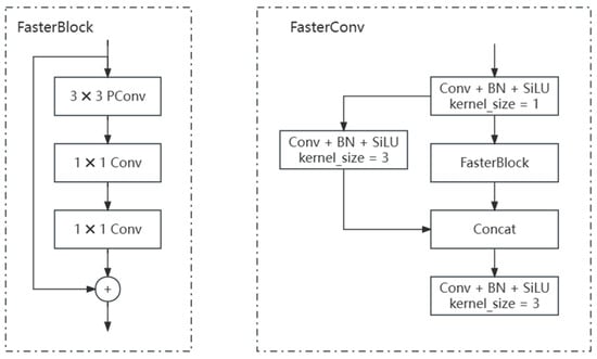 - Within the scope of this article, the integration of the FasterConv module, accomplished by seamlessly incorporating PConv [] into the backbone network of YOLOv5, guarantees a noteworthy decrease in model parameters and computations while upholding exceptional detection performance.