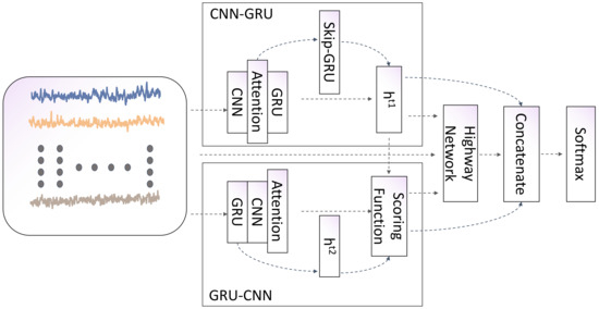 When facing the task of time-series data classification, combining convolutional neural networks (CNNs) and recurrent neural networks (RNNs) can fully utilize the strengths of both neural networks. This approach enables the handling of variable-sized inputs, capturing spatial and temporal dependencies, enhancing feature extraction capabilities, and mitigating the problem of vanishing gradients. By doing so, the performance of time-series data classification is improved. For example, Zhu et al. [16] applied the SeqGAN-based text generation oversampling technique to expand the Self-Admitted Technical Debt (SATD) dataset for SATD recognition tasks. They serialized the SATD data sample vectors and padded them to a uniform length. The proposed convolutional neural networks-gated recurrent unit model was employed for classification, successfully identifying multiple categories of SATD and assisting with accurate debt localization. Cai et al. [17] proposed a parallel fusion method based on CNN and GRU for classifying power quality disturbances (PQDs) in complex power grid environments. CNN was used to extract the short-term features of PQDs, while GRU was used to extract long-term features. The features extracted through CNN and GRU were simultaneously fused and transmitted to SoftMax for classification. Simulation results showed that this method achieved a high classification accuracy. In the context of classifying elderly heartbeat sounds, Yadav et al. [18] augmented and expanded the heart sound database and proposed an algorithm based on CNN and bidirectional GRU. This algorithm achieved a validation accuracy of 90% on the dataset. Kim et al. [19] employed 1D CNN-GRU for the computation of radar cross-section measurement data of missiles. The GRU layer effectively processed the radar interface measurement data, resulting in improved missile classification performance.