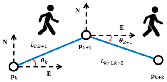 where and denote the GNSS positions corresponding to the PDR epoch and epoch, respectively.