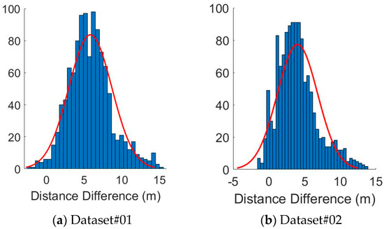 - In this paper, we utilize the Gaussian distribution to model the distance difference measurements; in Equations (28) and (29), we assume that the pedestrian walks straight when building the model. Although the results show that the Gaussian distribution fit the data well, it would still be interesting to build a more universal model with other probability distribution models.