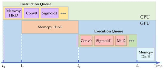 Although the computation in the inference task is performed on the GPU, the GPU first needs to obtain instructions and data from the CPU and return the results to the CPU after the computation is completed. The whole inference task is shown in Figure 2, which can be divided into four stages.