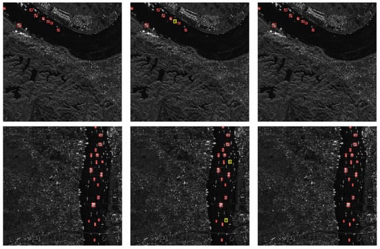 We focus on analyzing the impact of each of the methods proposed in this paper on the results. Firstly, we analyzed the function of SAR-aware model quantification. According to the effect of SAR-aware model quantification, the FPS of Yolov5n, Yolov5s, Yolov5m, and Yolov5l are improved by 46.6664, 73.472, 82.3089, and 83.3313 after using the method of SAR-aware model quantification. The AP of yolov5n, yolov5s, and yolov5m are decreased by 0.002, 0.002, 0.0075, and 0.015, respectively, with yolov5l showing the most significant decrease in accuracy. It can be seen that the detection speed of the SAR ship target detection network is greatly improved by using this method, but there is still some loss of detection accuracy. Secondly, we analyzed the effect of precision-aware scheduling. After using the method of precision-aware scheduling, the FPS of Yolov5n, Yolov5s, Yolov5m, and Yolov5l are decreased by 2.7363, 5.4544, 1.3638, and 0.583. The AP of Yolov5n, Yolov5s, Yolov5m, and Yolov5l are improved by 0.0019, 0.0019, 0.0074, and 0.0148, respectively. Although this step gains a very low accuracy, the baseline is that after this step, the accuracy error is reduced to within 0.0001, and the loss of FPS is only in the single digits. This result achieves a perfect trade-off.