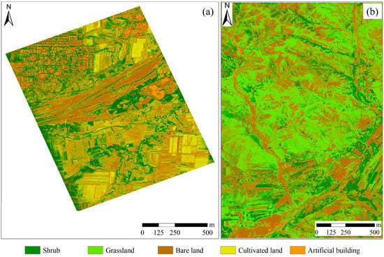 Classification maps of Wu’an (a) and Inner Mongolia mining areas (b).