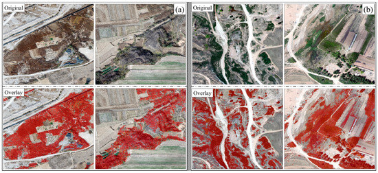 Shrub extraction areas before (above) and after (below) stacking in the Wu’an (a) and Inner Mongolia mining areas (b).
