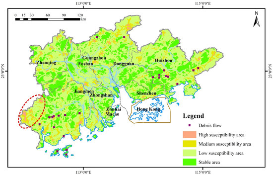 China is significantly impacted by global geohazards, evident from the mounting intensity and frequency of such incidents [48]. In recent times, driven by rapid socio-economic growth and urbanization, the Pearl River Delta, as one of the largest urban clusters in China, has experienced an expansion in geological environmental development and utilization. Characterized by intricate tectonics, extensive karst landscapes, and widespread Quaternary deposits, the area faces natural catastrophes including landslides, collapses, and debris flows, resulting in substantial economic losses [49,50,51,52]. Data from the Guangdong Province Disaster Prevention and Reduction Yearbook [53] show that between 1994 and 2009, geohazards caused 276 fatalities, 534 injuries, and economic losses totaling 256.48 million US dollars. Research on the geo-environment vulnerability in the Pearl River Delta primarily focuses on two aspects: geological environmental status assessments and single geohazard susceptibility assessments. Zeng and Liu (2015) [54] conducted an investigation into key geo-environmental issues in the Pearl River Delta, including ground subsidence, sea water intrusion, and waste pollution. The study identified rising sea levels, human activities, and extreme weather events as the primary triggering factors for geohazards. In a separate study, Zhang et al. (2019) [55] employed the AHP method to assess landslide susceptibility. Dou et al. (2008) [56] introduced an innovative automated detection method for karst collapse based on image analysis. Liu et al. (2023) [57] conducted ground subsidence modeling and assessment using remote sensing imagery and geological data. Furthermore, Lin et al. (2019) [58] employed an integrated Bayesian model for modeling sea water intrusion. Presently, there exists a notable dearth of comprehensive assessments regarding geological environmental vulnerability. Given the presence of geohazards, such as landslides, debris flows, ground subsidence, and karst collapses, the assessment of geo-environment vulnerability based on susceptibility to multiple geohazards is crucial for effective prevention and mitigation, ensuring human safety and protecting valuable assets.