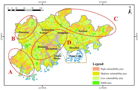 Advancements in remote sensing (RS) technology and geographic information systems (GIS) have contributed to the maturity of geo-environment vulnerability assessment techniques. Ma et al. (2019) [17] assessed the geo-environment vulnerability of Beihai, China, based on the susceptibility to landslides, collapses, and sea water intrusion. Ma et al. (2020) [20] assessed the geo-environmental risk in Zhengzhou, China, considering regional crustal stability and 11 types of geohazards and progressive geo-environmental issues. Chang et al. (2022) [21] researched the susceptibility of landslides, collapses, ground subsidence, and debris flows, proposing a multi-hazard vulnerability assessment method. Li et al. (2023) [22] developed an assessment framework for the ecological geo-environment vulnerability of arid and semi-arid cities, focusing on land desertification, soil erosion, and landslides. While these studies have made progress, there is currently no unified quantitative scoring standard, and research on geo-environment vulnerability assessment in large urban clusters is limited [23]. These limitations hinder the ability to balance socio-economic development and effective decision-making for geohazard prevention and control.