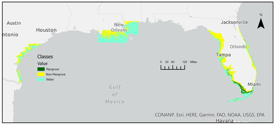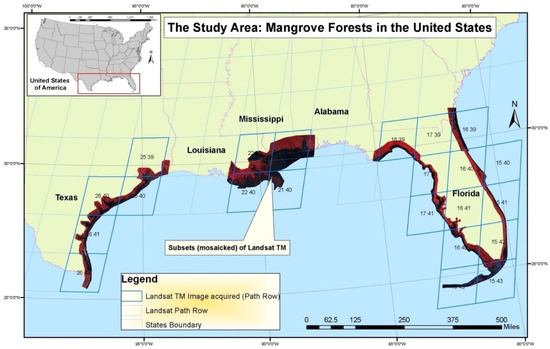 Mangrove forests in both developed and developing countries are undergoing significant transformations due to both natural and anthropogenic factors. In the conterminous United States encompassing Florida, Texas, and Louisiana, the forests are changing due to coastal development, urbanization, alterations in hydrological patterns, the effects of global warming, sea level rise, and the occurrence of natural disasters such as hurricanes [1,2,3].