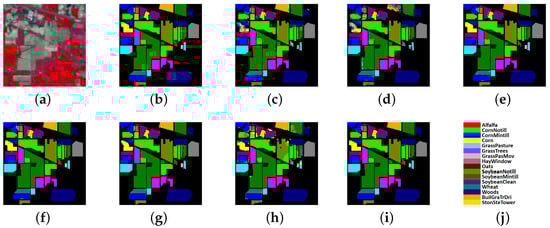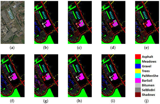 (0.9892 ± 0.002) than the others. The classification maps are shown in