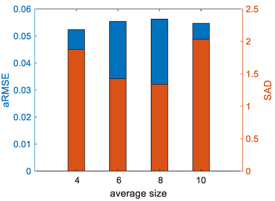 Influence of the average size of superpixels on aRMSE and SAD.