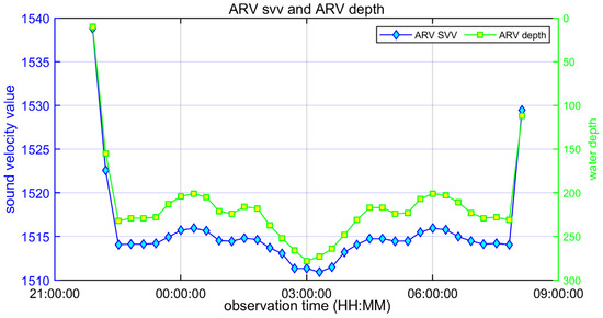 Time series of on-site sound velocity values and ARV depth.