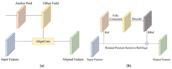 Structures of current oriented object detection methods, including (a) AlignConv in SANet and (b) RoI transformer.
