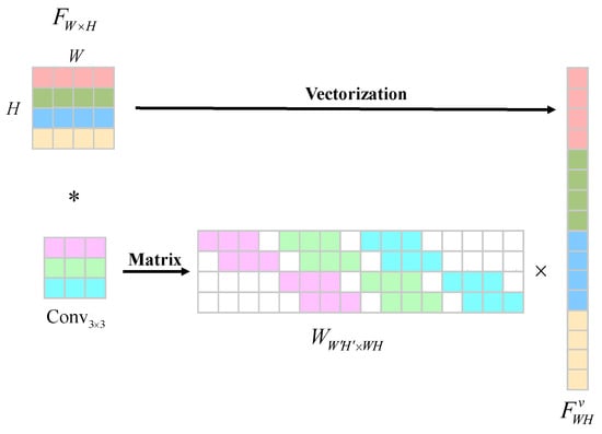in which represents the structured sparse matrix that contains the convolution kernel. Here, C, W, and H denote the feature map’s channels, width, and height, respectively. denotes the vectorized representation of the input features.