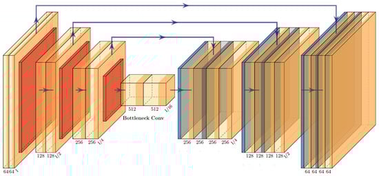 U-Net is a deep learning architecture proposed by Ronneberger et al. [] for the semantic segmentation of medical images. The goal of semantic segmentation is to label each pixel of the image with the corresponding class label to which it belongs. As a result, the output is not just a one-class label for the whole image but a high-resolution image with each pixel individually labeled. This results in generating high-quality segmented results compared to image-patch-based methods. A lot of complex tasks in computer vision require the generation of high-quality semantic segmentation labels. Hence, U-Nets are employed in vehicle detection [], crack detection in buildings and dams [,], medical image segmentation [], modern agriculture [], and geosensing [].
