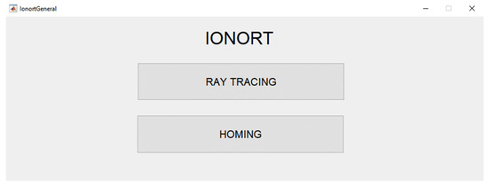 The Matlab programming language has been employed for developing a new graphical design. In fact, there are many updates regarding the GUI. The first one concerns the possibility, when launching IONORT, to choose what procedure to launch: ray tracing or homing (Figure 4).