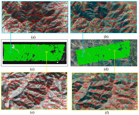 Table 10 gives the detailed matching results for the four algorithms. Among them, SIFT, as a classical method, only achieved a correctness rate of 6.6%. LNIFT algorithm obtained a higher number of NCM with 108. However, its SR was only 3.3%. RIFT had the same NCM as LNIFT but achieved higher robustness, with an SR of 53%. In comparison, NIFT successfully matched all image pairs and achieved more than three times NCM compared with the other algorithms.
