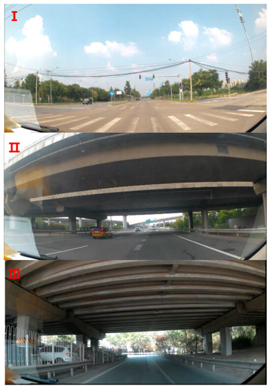 Three typical car driving scenarios in Experiment A (Number I–III represents three different observation environments).