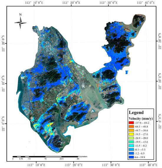 Furthermore, given that Zhuhai is situated in a low-latitude region with abundant vegetation cover, the application of the SBAS-InSAR technique is still influenced by vegetation, potentially resulting in an incoherence phenomenon [68,69,70]. Monitoring ground deformation in regions with dense vegetation cover remains a challenge to be addressed. Subsequent research endeavors could investigate more efficient approaches to overcome this limitation, in order to improve the precision of ground deformation monitoring in heavily vegetated areas.