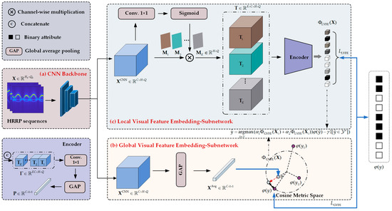 (2) Visual-semantic embedding encoder: The visual-semantic embedding encoder is used to encode K attention feature maps into local visual embeddings. This encoder consists primarily of a convolution-pooling structure and a linear transformation layer. First, the attention feature maps () are concatenated along the channel dimension to obtain the concatenated attention feature map :
