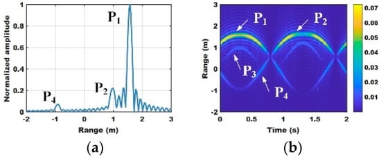 HRRP and HRRP sequence of a cylinder−shaped target with tumble micromotion form. (a) is the HRRP of cylinder-shaped target. (b) is the HRRP sequence of the cylinder-shaped target.