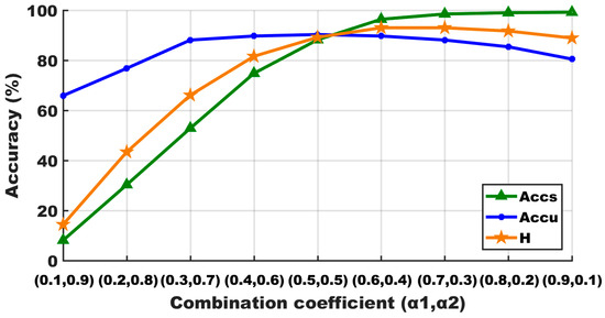 5.3.5. Effect of Combination Coefficients (α1,α2)