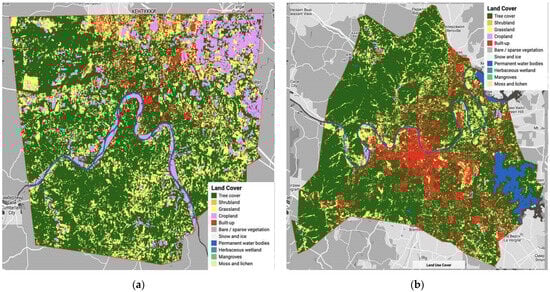 Calculation of urban land cover classification layer: (a) Montgomery County; (b) Davidson County.