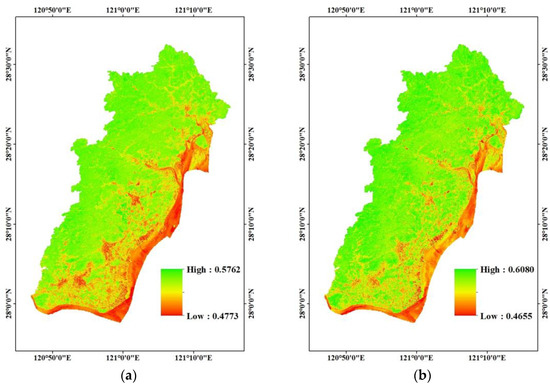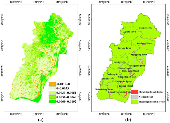 (a) Spatial area variability (LRR) and (b) time variability map (EPR) of Yueqing Coastline.