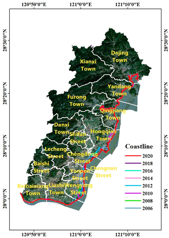Beibaixiang Town and Liushi Town are located in the south of Yueqing City. Most of the coastline in these areas is man-made and has a harbor. However, the coastline has not changed much in recent years and has not suffered further damage. Hongqiao Town is located in the middle of Yueqing City, and the coastline of the wharf has changed greatly. For the above-mentioned areas, the local government can retain the existing coastline development activities and no longer carry out projects to change the coastline, such as land reclamation, and properly develop without destroying the coastline environment. In addition, coastline management needs to be strengthened to promote coordination between environmental protection and development.