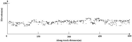 The study area of the Sahara Desert (SD) in northern Africa has a latitude and longitude range of (22°51′~22°58′N, 6°55′~6°57′E), and the topography of the site is less undulating. We select the data of gt1r in dataset 3 at 63~65 s as the experimental data. The Taklamakan Desert (TD) in Xinjiang, China, has a latitude and longitude range of (40°21′~40°30′N, 82°22′~82°26′E), and the part of gt1r data in dataset4 at 282~284 s is selected as the experimental data. The overall distribution of desert photons is uniform, as seen from Figure 2. And the noise photon rate is low for both desert data due to the acquisition time of night.