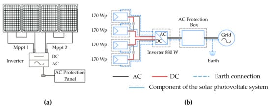 - EfectoLED. Cuadro De Protección PV Monofásico 2-6kW AC MAXGE. 2023. Available online: https://www.efectoled.com/es/comprar-cofrets/87455-cuadro-de-proteccion-pv-maxge-2-6kw-ac-monofasico.html (accessed on 23 August 2023).