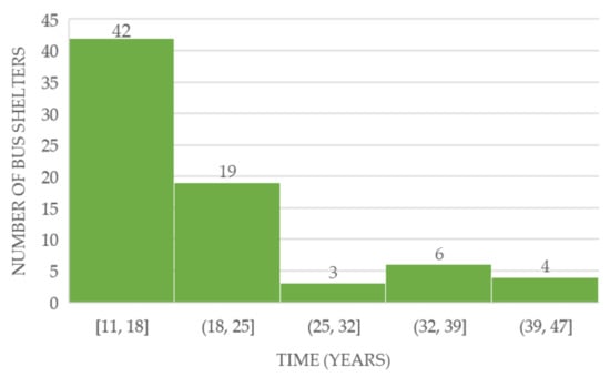 Focusing on the presence of obstacles that can generate shadows that reduce solar radiation and therefore their solar potential, 55 of the 74 bus shelters do have objects in their surroundings that can generate shadows. Expressed in percentages, 26% of the bus shelters in the city have no obstacles in their surroundings (Table 2).
