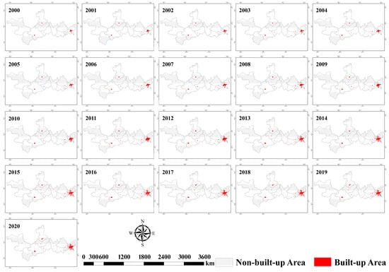 Spatial Pattern of Urban Built-up Areas from 2000 to 2020.