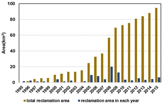 The changes in reclamation area from 1995 to 2015, based on Lu et al. [].