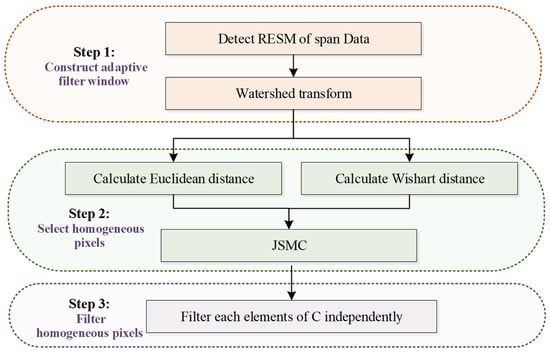 Flowchart of PolSAR speckle filtering method based on JSMC.