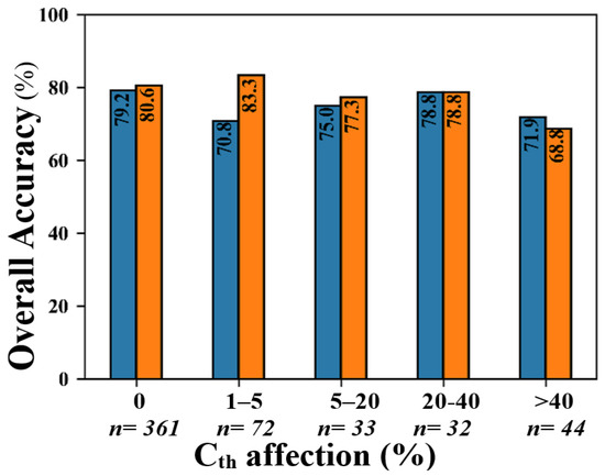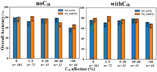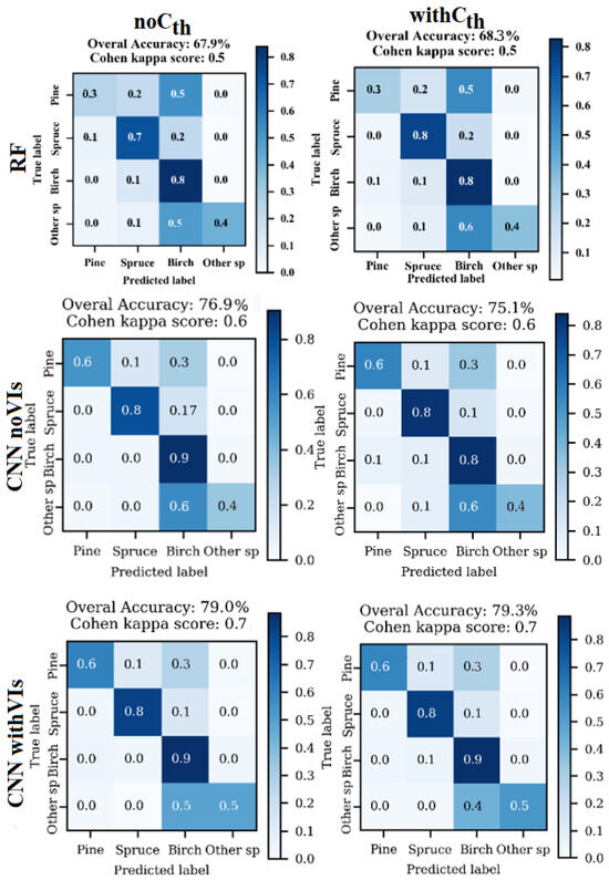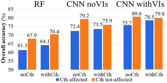 4.1. The Effects of Applying Canopy Threshold (Cth)-Based Image Pre-Processing on the Accuracy of Species Classification in CNN and RF
