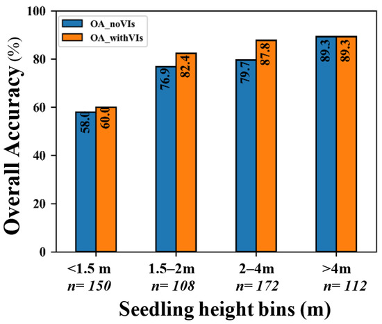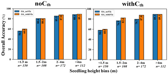 4.5. The Effects of Seedling-Tree Height and Number of Cth-Affected Pixels on the Accuracy of Species Classification in CNN and RF
