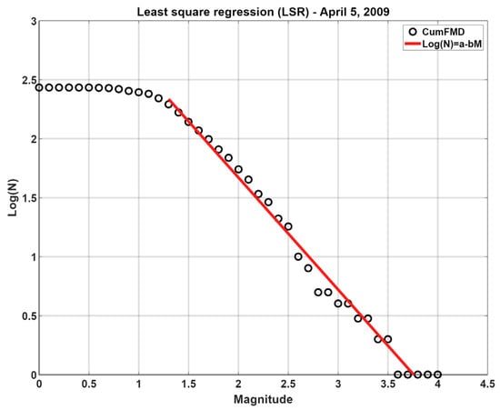The magnitude of completeness associated with the entire time period considered was estimated to be 2.6, and the maximum magnitude recorded, before the main shock, came to 4.0. Based on these considerations, it was decided to adopt a number of events, N, of 25 for the statistical determination of the