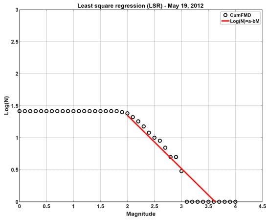 For the estimation of the uncertainty in the calculation of the b-value, the following values were calculated: 9.18% for the period from 1 March 1987 to 20 May 2012; 3.42% from 20 May 2012 to 3 June 2012; and 6.72% from 3 June 2012 to 25 May 2013.
