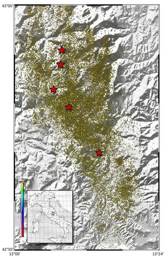 This area of the Central–Northern Apennines fault system is particularly active, as previously mentioned for the L’Aquila earthquake, and as shown by the occurrence of a significant number of historical earthquakes with MW 6.0, beginning in the 13th century (see [