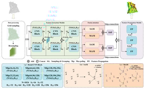 The overall framework of the proposed SMAnet is shown in Figure 1. It covers five modules, namely, data preprocessing layer, feature extraction layer, fusion attention layer, SSP aggregation layer and feature propagation upsampling layer. Each module is introduced as follows: