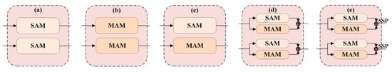 Schematic diagram of different strategies, (a) SMAnet (S), (b) SMAnet (M), (c) SMAnet (S+M), (d) SMAnet (SM), and (e) SMAnet (SM+SSP).