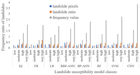 | Methods | Susceptibility Class | Pixels No. | Landslide Number | Landslide Pixels No. | Landslide Ratio | Frequency Value |