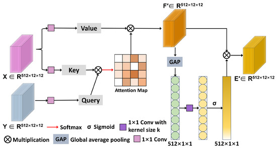 where C is the number of the channel dimension, indices the neatest odd number of n. The parameters and b are set to two and one, respectively, by referring to [52]. In the experiment, the C of the input came out to be 512, so the k was set to five.
