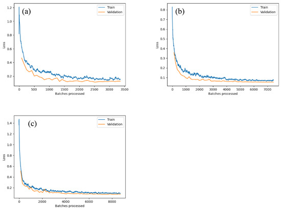Figure 4. U-Net loss curves based on 2021 samples: (a) loss curve at ZZW, (b) loss curve at DFJ, (c) loss curve at TSG.